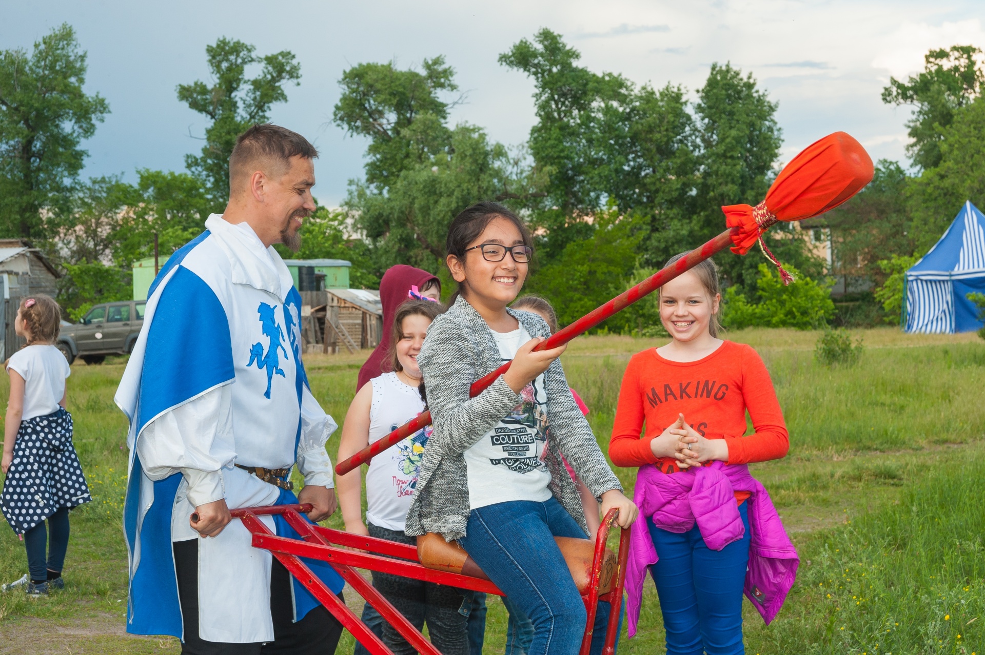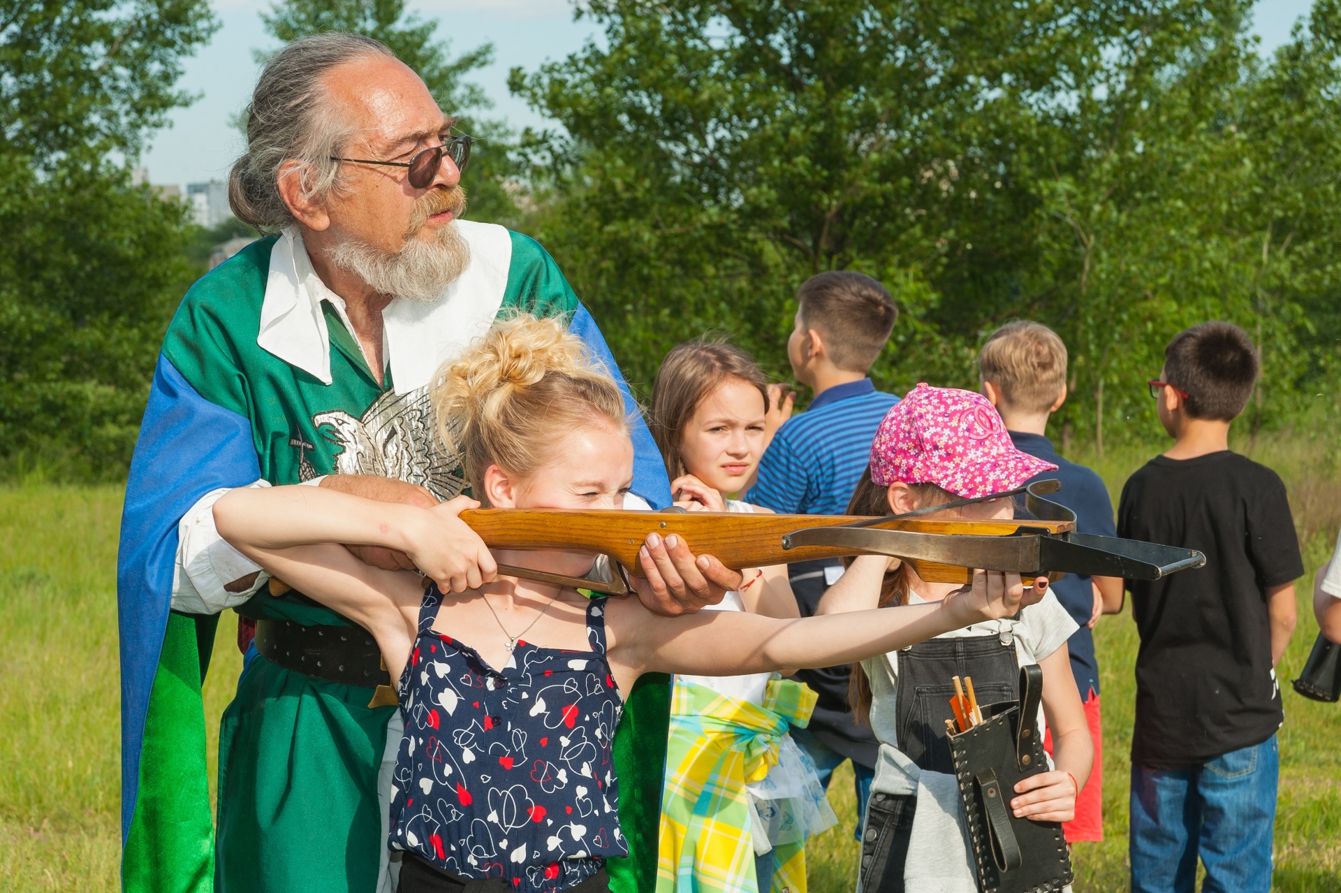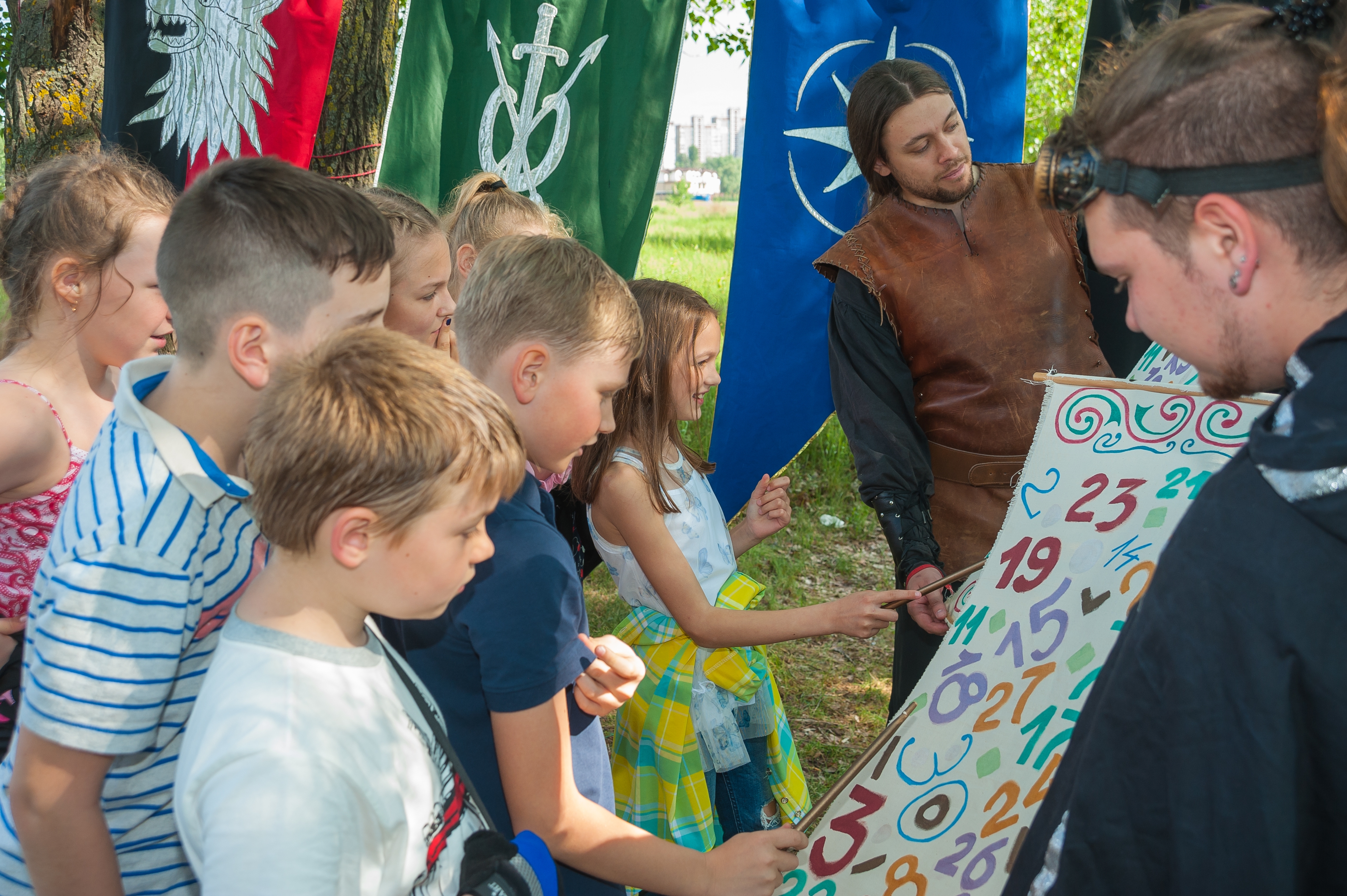 Дети будут проходить интересные и веселые испытания: сражаться на рыцарском турнире, стрелять из лука, создавать волшебные зелья, решать логические задачи Всё оружие и вообще реквизит на детском безопасны и адаптированы к возрасту.В программы входят мастер-классы и показательные выступления ,органично вплетённые в выбранный сюжет В программе заняты не менее 6 костюмированных актёров,реквизит авторский и соответствует сюжету праздника В финале фаер-номер в подарок